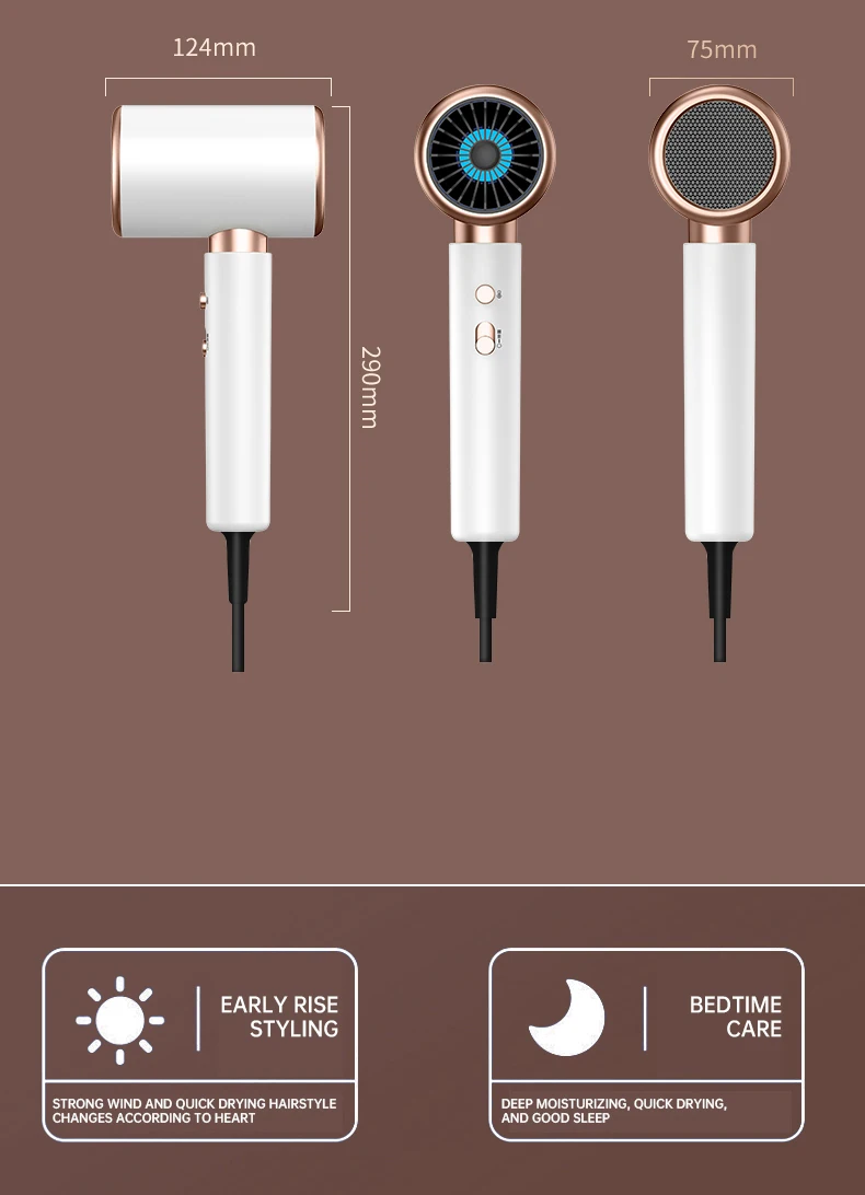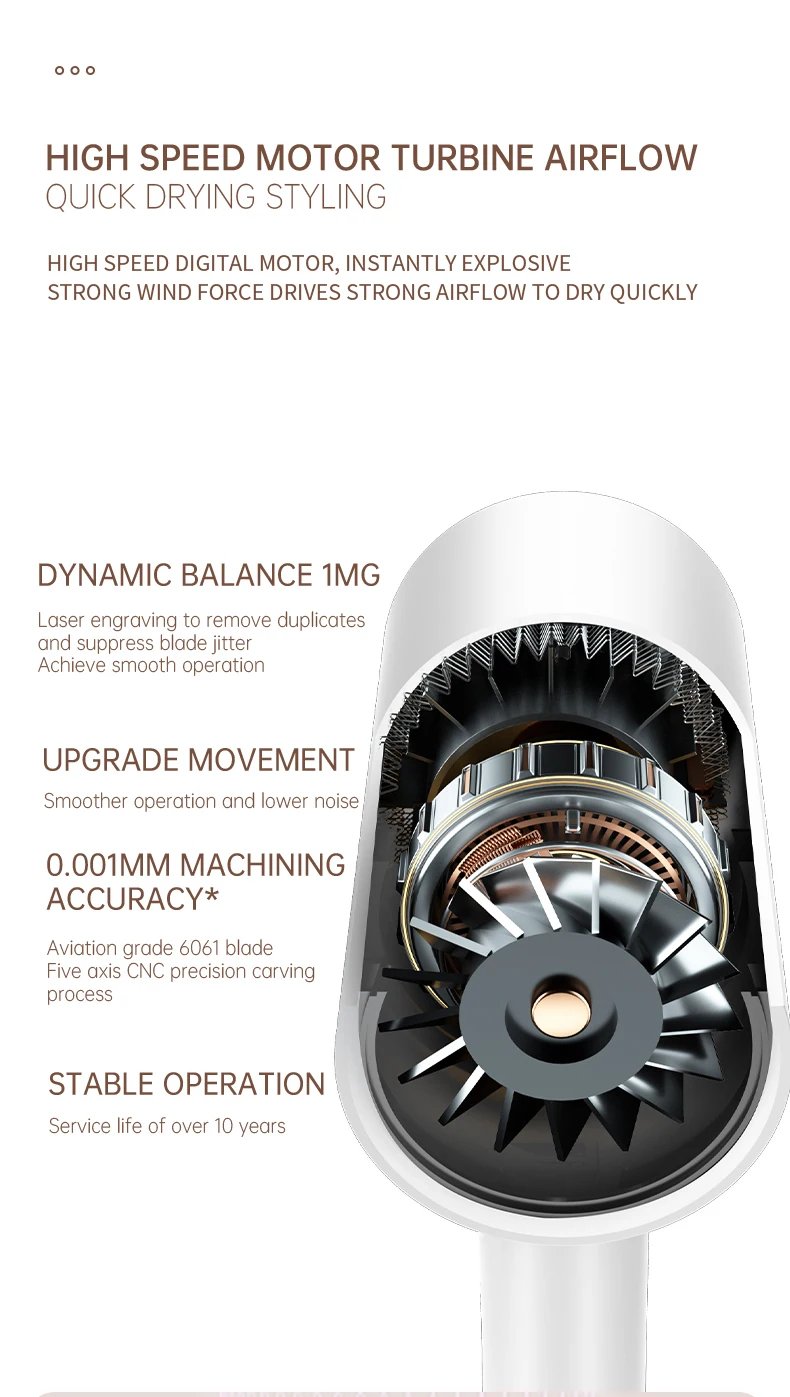 • High-Speed Electric Turbine Airflow :Experience the power of high-speed electric turbine airflow, designed to dry your hair quickly and efficiently.